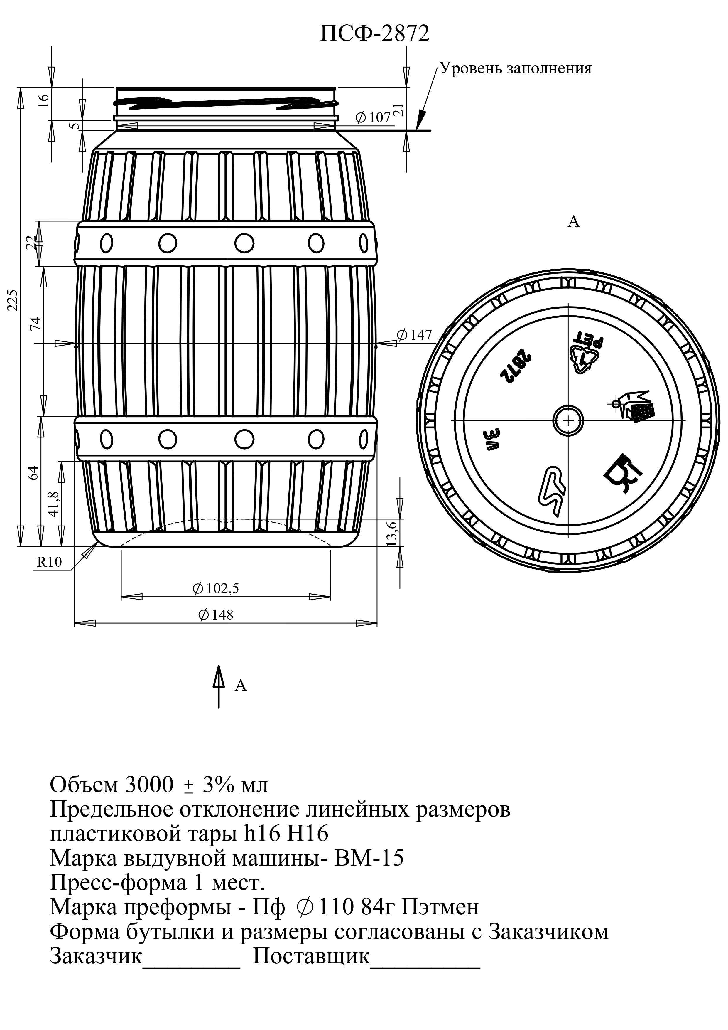 Банка ПЭТ "Бочка" 3000 мл., 110 мм. (арт. 2872)