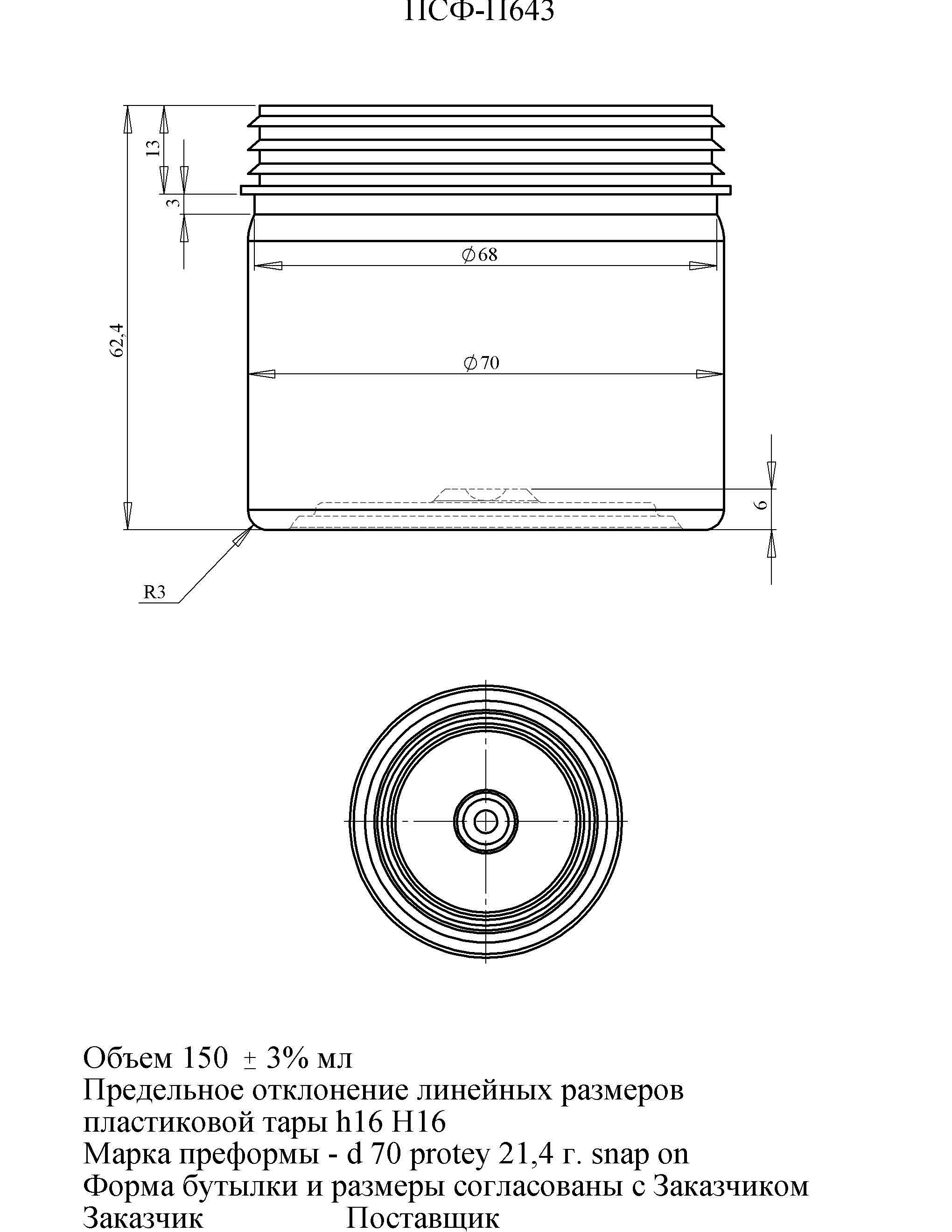 Банка ПЭТ "Snap on" 150 мл, 70 мм (арт. 643)